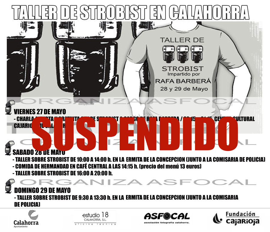 Se suspende oficialmente el Taller de Strobist por la grave hospitalización de un familiar de Rafa Barberá. Desde Asfocal le mandamos un fuerte abrazo para que  en la medida de lo posible le reconforte en estos momentos tan duros.
