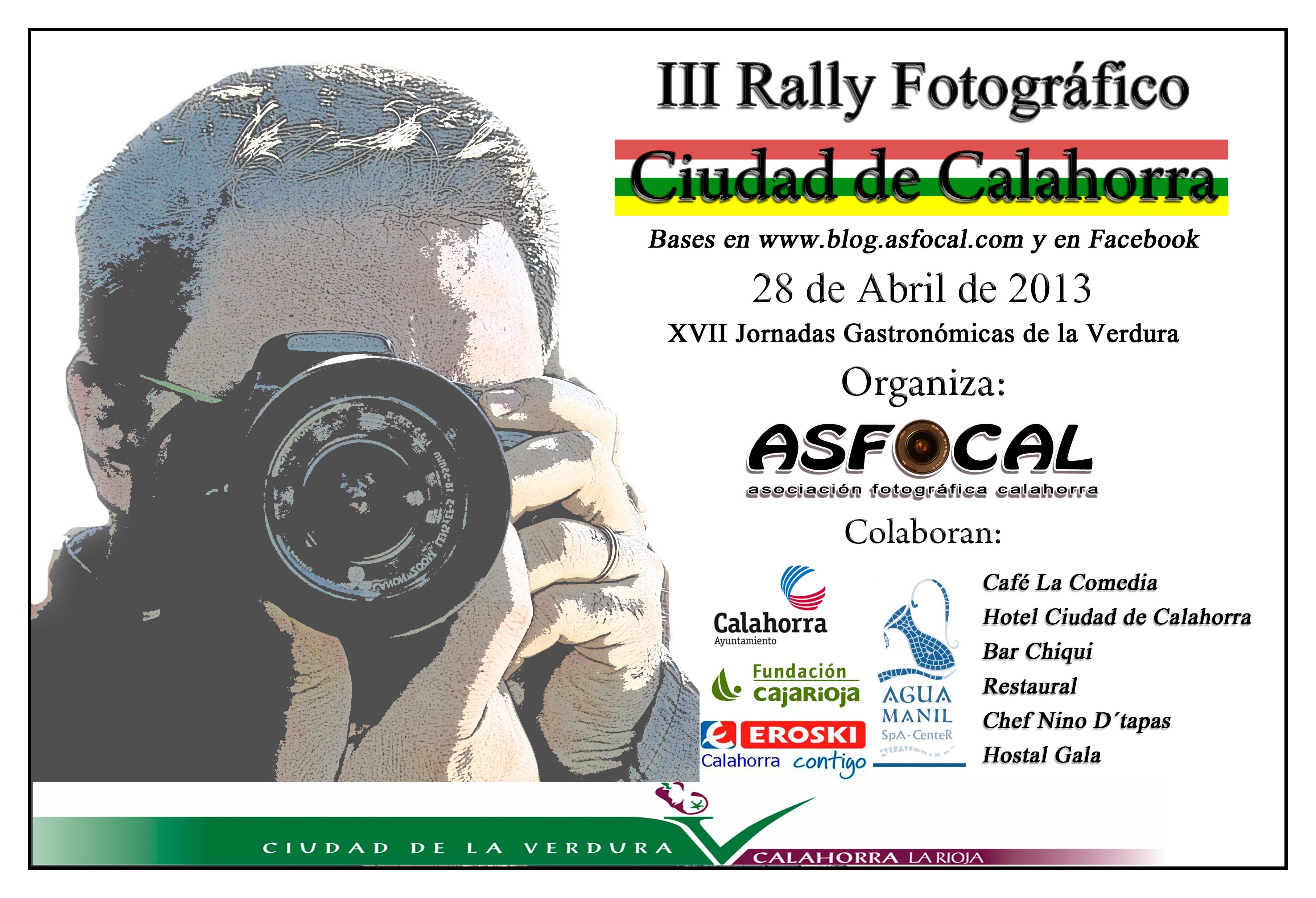 La Asociación Fotográfica de Calahorra (ASFOCAL) en colaboración con el Ayuntamiento de Calahorra y con motivo de las XVII Jornadas Gastronómicas de la Verdura 2013, convoca el III Rally Fotográfico Ciudad de Calahorra que ser realizará el domingo 28 de abril 2013 , de acuerdo con las siguientes bases: